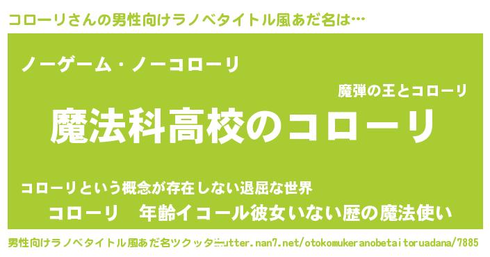 | 意味不明あだ名 | 『自称コローリ』『ニラ科コローリ属』 |