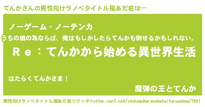 | 女子向けラノベタイトル風あだ名 | 『闇のてんか』『死神てんかの再婚』 |
