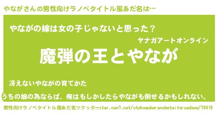 | ヒーロー風カッコイイあだ名 | 『仮面ヤナダー』『天弓騎士ヤナ』 |