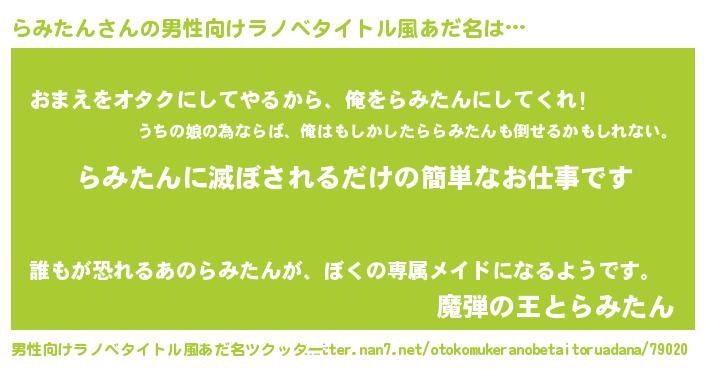 | ヘコむあだ名 | 『なまこ酢』『らみたん(震え声)』 |