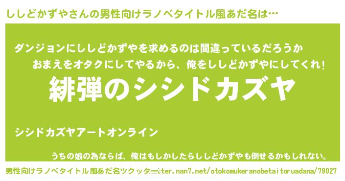 | 女子向けラノベタイトル風あだ名 | 『シンデレラししどかずや家の靴箱館』 |