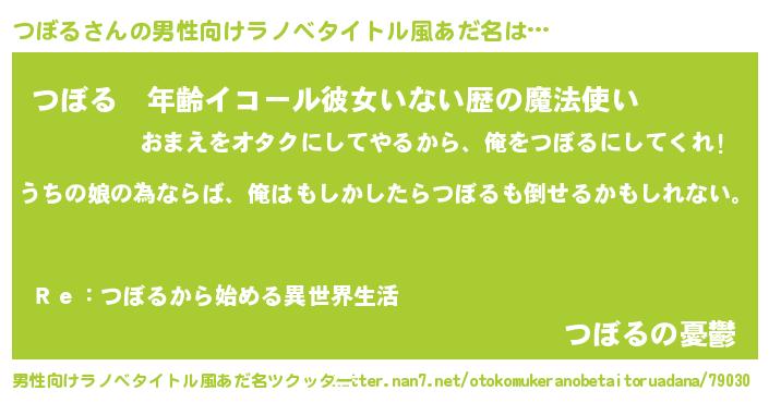 | 女子向けラノベタイトル風あだ名 | 『つぼるの婚約者』『つぼる恋絵巻』 |