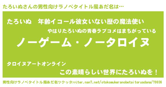 | 女子向けラノベタイトル風あだ名 | 『死神たろいぬの再婚』 |