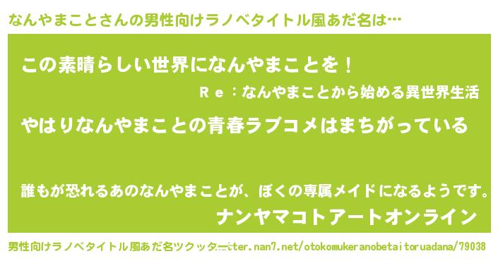 | 女子向けラノベタイトル風あだ名 | 『なんやまことの雑貨屋さん』 |