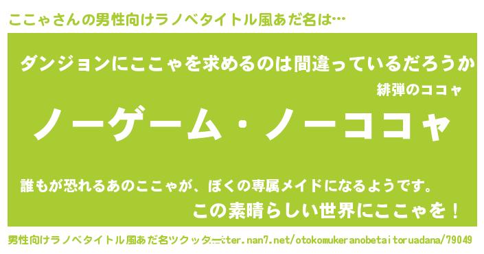 | 女子向けラノベタイトル風あだ名 | 『ここゃ恋絵巻』『ここゃは平凡を望む』 |