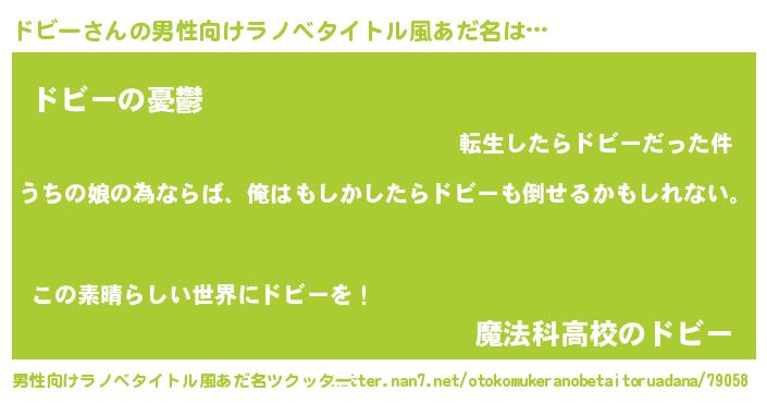 | 女子向けラノベタイトル風あだ名 | 『ドビーの婚約者』 |
