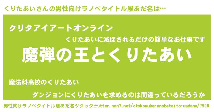 | 女子向けラノベタイトル風あだ名 | 『くりたあいが死なない童話 林檎のくりたあいの診療簿』 |