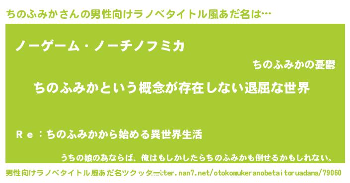 | 伝説のあだ名 | 『古より伝わる勇者ちのふみか』 |