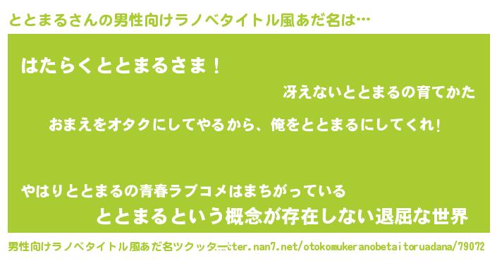 女子向けラノベタイトル風あだ名 | 『ととまる夫妻のなれそめ』 |