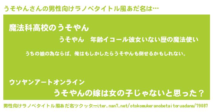 | 女子向けラノベタイトル風あだ名 | 『うそやん伯爵の花嫁』 |