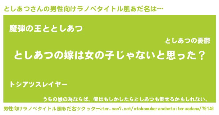 | 女子向けラノベタイトル風あだ名 | 『としあつ様がみてる』 |