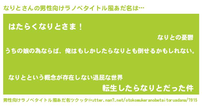 | ポケモン風あだ名 | 『ナリトダネ』『ナリゴンZ』 |