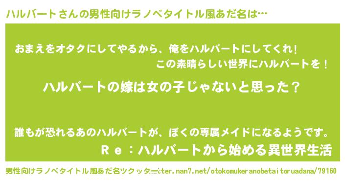 | 女子向けラノベタイトル風あだ名 | 『ハルバート様がみてる』 |