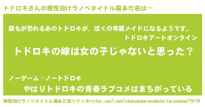 | 女子向けラノベタイトル風あだ名 | 『トドロキ様がみてる』 |