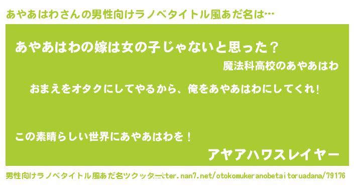 | 女子向けラノベタイトル風あだ名 | 『あやあはわ夫妻のなれそめ』 |
