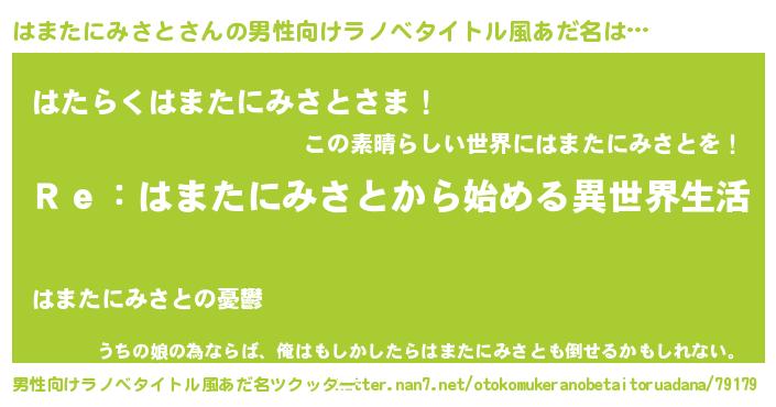 | ヒーロー風カッコイイあだ名 | 『最強戦士ハマタニミサト』 |