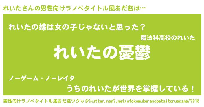 | 女子向けラノベタイトル風あだ名 | 『(仮)れいたのやんごとなき事情』 |