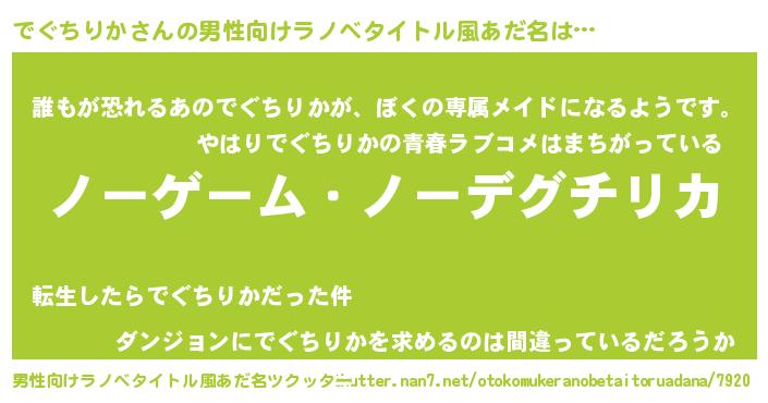 | ヒーロー風カッコイイあだ名 | 『天空の使者でぐちりか』『黄金騎士デグ』 |