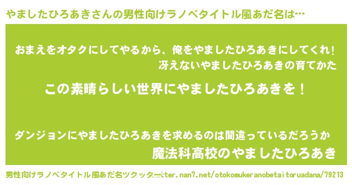 | 意味不明あだ名 | 『住所不定無職やましたひろあき(43歳)』 |