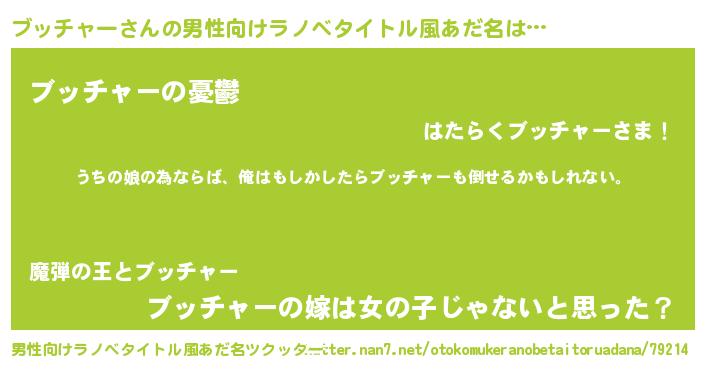 | 胡散臭い通販商品みたいなあだ名 | 『運命の人と巡り会える高級そうな壺…その名も「ブッチャー」』 |