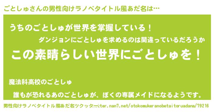| 伝説のあだ名 | 『古文書に記された勇者ごとしゅ』 |