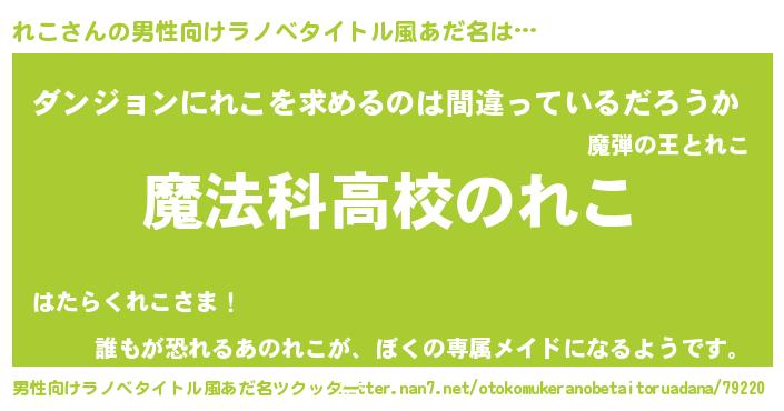 | 女子向けラノベタイトル風あだ名 | 『れこアンティーク』『れこは平凡を望む』 |