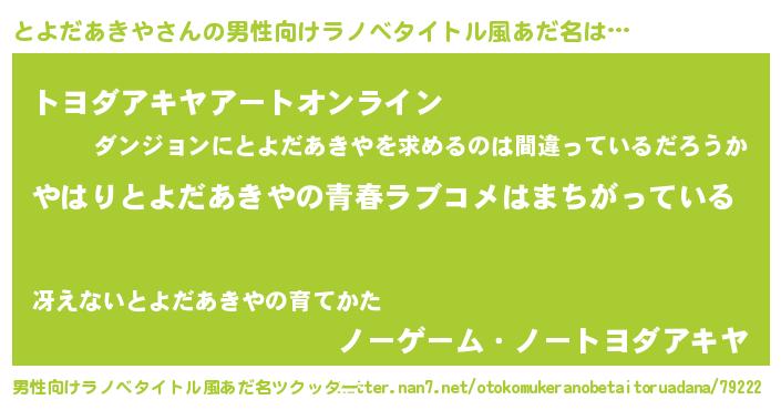 | ファンタジー風あだ名 | 『エターナルトヨダアキヤー』 |
