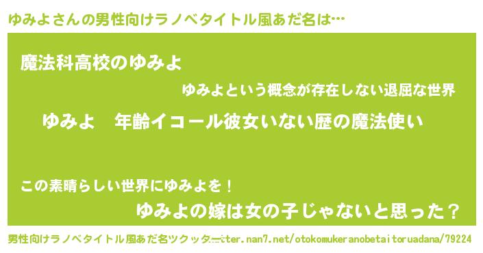 | 女子向けラノベタイトル風あだ名 | 『ゆみよの玉の輿計画!』 |