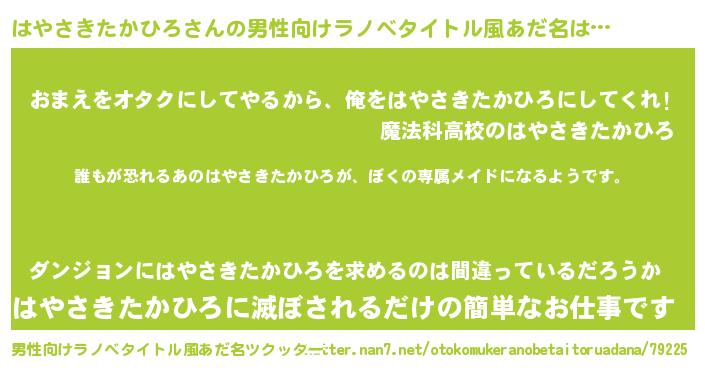 | 意味不明あだ名 | 『永久保存はやさきたかひろ』 |