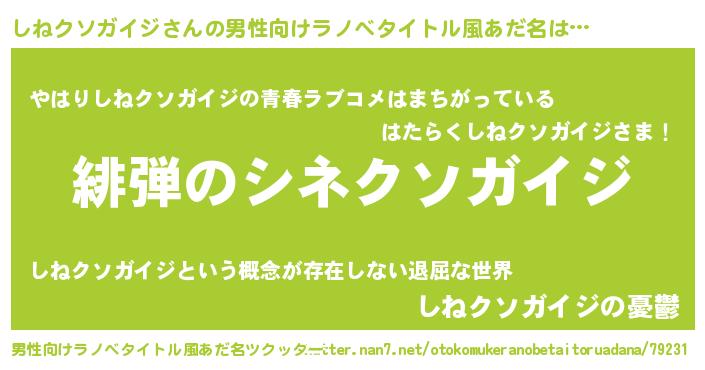 | 意味不明あだ名 | 『しねクソガイジフォーエバー』 |