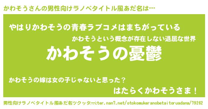 | 女子向けラノベタイトル風あだ名 | 『かわそう姫と円卓の騎士』 |