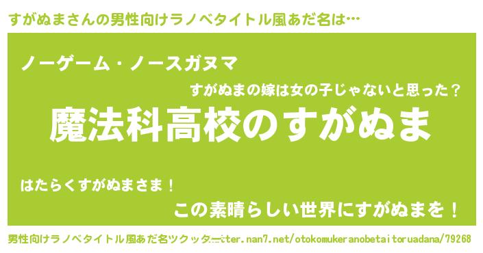 | 女子向けラノベタイトル風あだ名 | 『すがぬまなんてお断りですっ。』 |