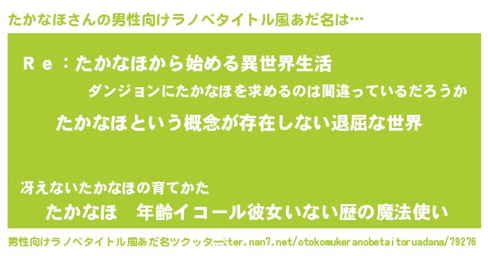 | 胡散臭い通販商品みたいなあだ名 | 『来世でも幸せになれる健康食品…その名も「たかなほ」』 |