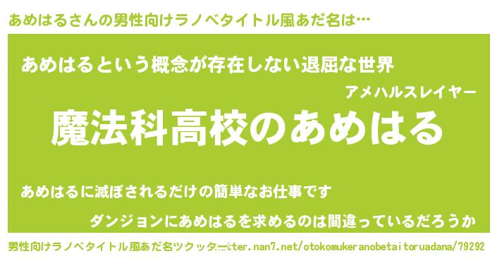 | 女子向けラノベタイトル風あだ名 | 『あめはるなんてお断りですっ。』 |