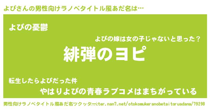 | ヘコむあだ名 | 『よぴにゅー』『牛乳』『よぴを』 |