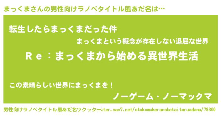 | 意味不明あだ名 | 『自称まっくま』『なめこ科まっくま属』 |