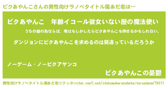 | ポケモン風あだ名 | 『ヒピクアヤンコ』『ピクキング』 |