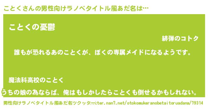 | 女子向けラノベタイトル風あだ名 | 『ことくの契約王妃』『ことく伯爵の花嫁』 |