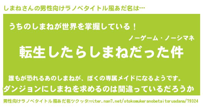 | 女子向けラノベタイトル風あだ名 | 『しまねの玉の輿計画!』『しまね恋絵巻』 |