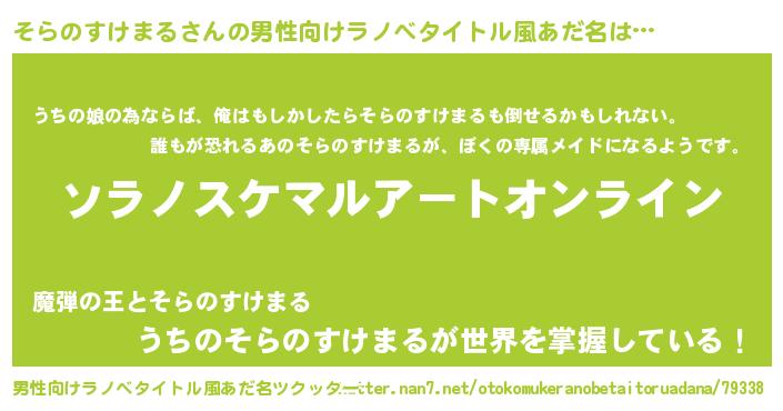 | 女子向けラノベタイトル風あだ名 | 『そらのすけまる姫と円卓の騎士』 |