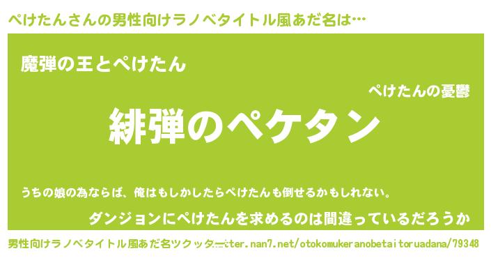 | 意味不明あだ名 | 『住所不定無職ぺけたん(9歳)』 |