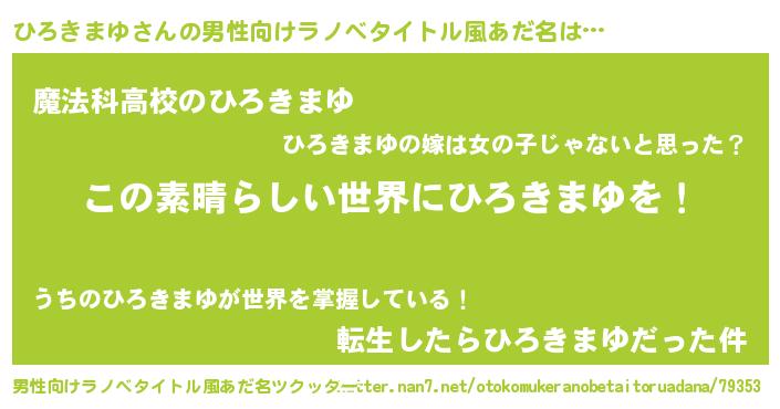 | 女子向けラノベタイトル風あだ名 | 『悪役ひろきまゆに転生したようですが、知った事ではありません』 |