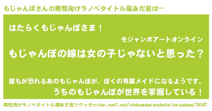 | 女子向けラノベタイトル風あだ名 | 『もじゃんぼの卵を拾いまして』 |