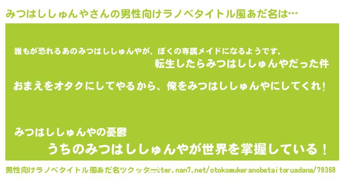 | 胡散臭い通販商品みたいなあだ名 | 『お金では代えられない隕石のかけら…その名も「みつはししゅんや」』 |