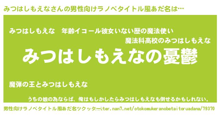 | ヒーロー風カッコイイあだ名 | 『スーパーミツハシモエナ』 |