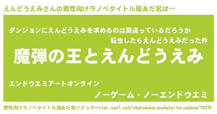 | 女子向けラノベタイトル風あだ名 | 『乙女ゲームの破滅フラグしかない悪役えんどうえみに転生してしまった…』 |