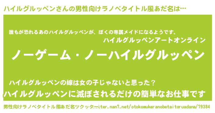 | 女子向けラノベタイトル風あだ名 | 『ハイルグルッペン恋絵巻』 |