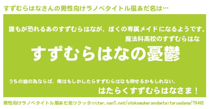 | ヒーロー風カッコイイあだ名 | 『スーパースズムラハナ』『仮面スズダー』 |