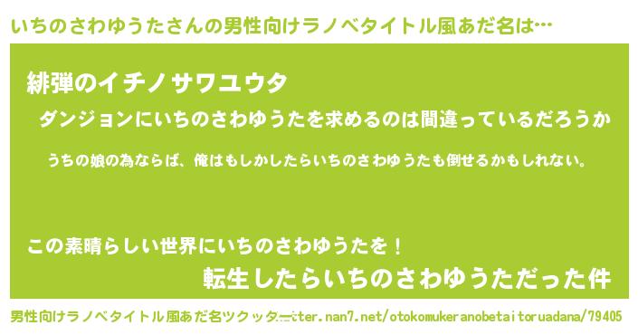 | 女子向けラノベタイトル風あだ名 | 『いちのさわゆうた伯爵の花嫁』 |