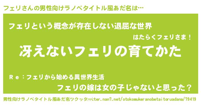 | ヘコむあだ名 | 『フェリ(小並感)』『フェぷりん』 |